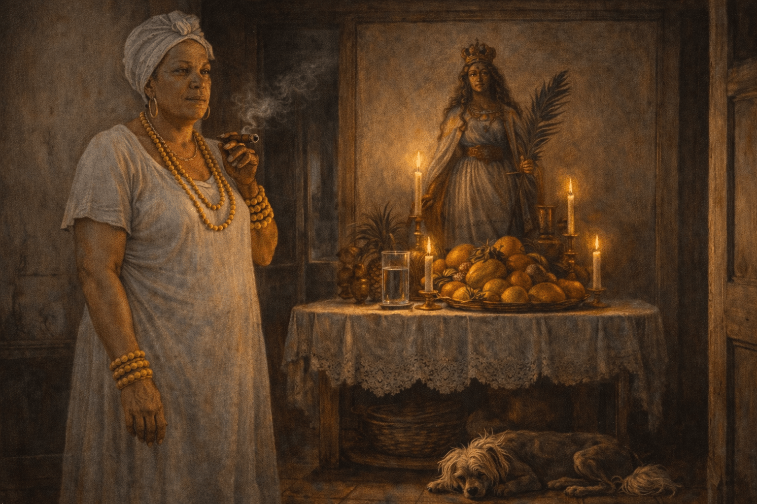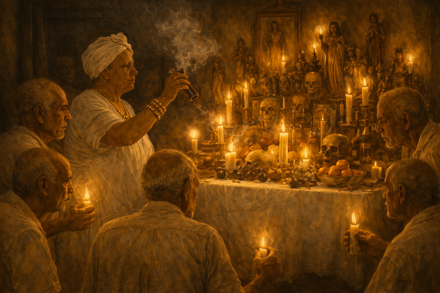 Aquel círculo femenino era tan secreto que solo las santeras que ocupaban uno de los doce escaños —asientos ceremoniales reservados para iniciadas de alto rango— conocían su existencia. La presidenta vitalicia del consejo era la santera Macorina, mujer venerada por los vivos, temida por los muertos y respetada por la mismísima Madre de Aguas, cuyo nombre no era pronunciado por quienes la veneraban y a quien casi siempre se referían simplemente como «ella».